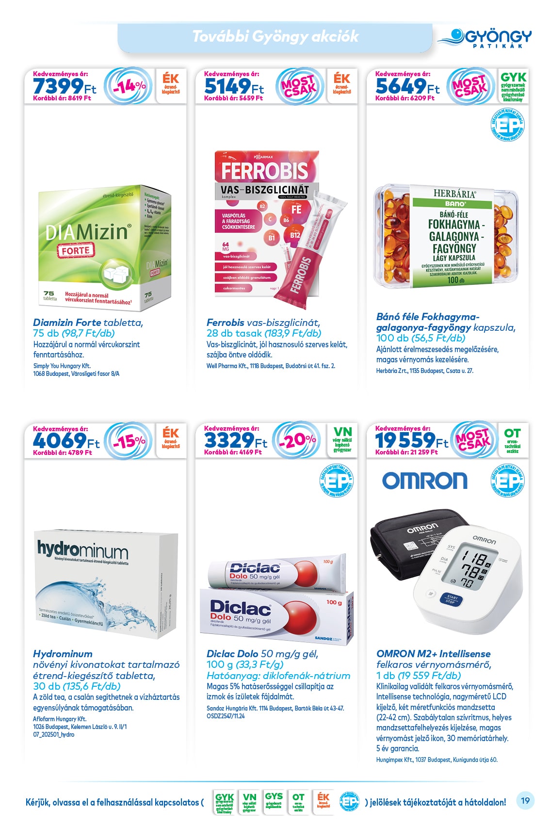 A havonta frissülő akciókról bővebb tájékoztatást a gyógyszertárunkban található hirdetőtáblán, szórólapokon illetve honlapunkon az alább megtekinthető akciós ismertetőkből tájékozódhat.