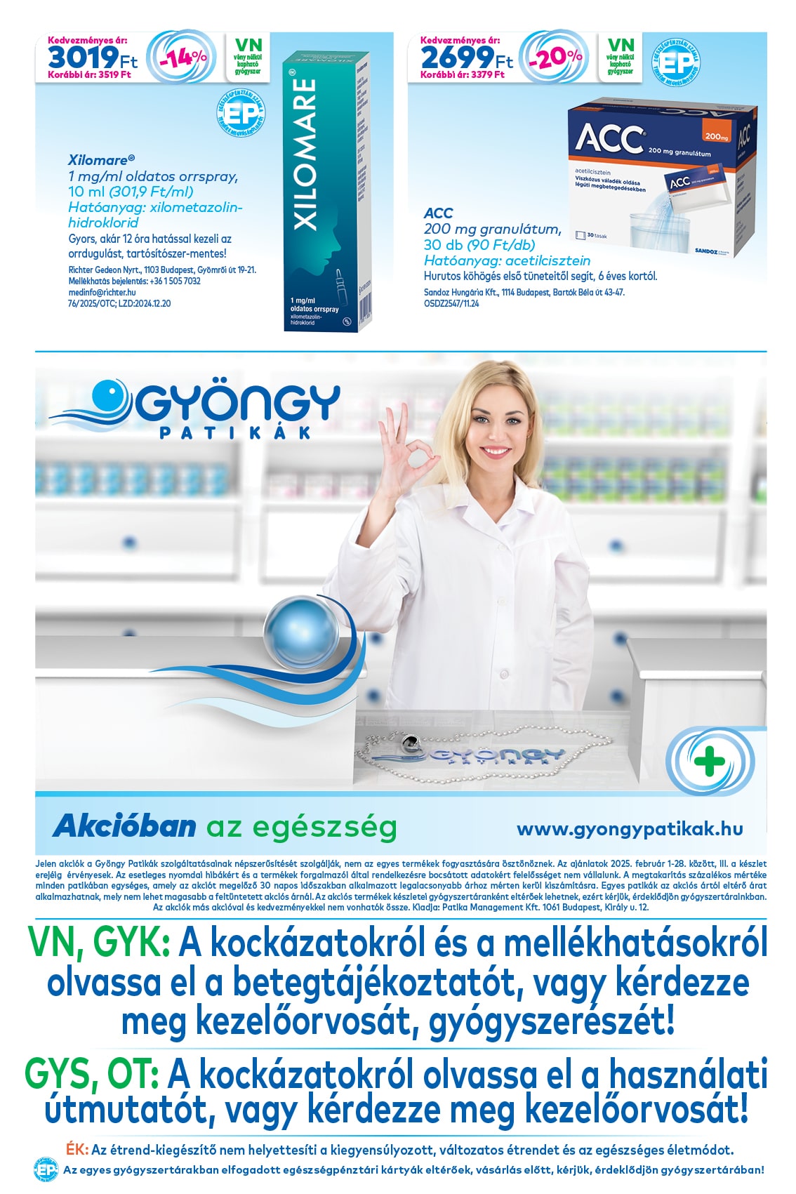 Gyógyszertárunk 2008-ban csatlakozott a GYÖNGY Patikák országos hálózatához, így folyamatos kedvezményeket tudunk nyújtani a hozzánk betérőknek.
